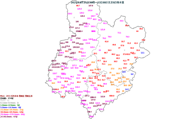 巴州区8月21日20时-23日08时雨量表(单位:mm)
