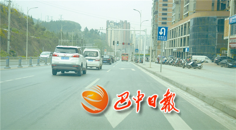 3月10日上午10时许,记者来到何师傅所说的“奇怪”路口。该路口位于北龛大道西段巴中汽车北站附近,和常见的左转车道靠左设置有所不同,同向的三条车道中,中间两条车道为直行车道,最右侧车道上设置了左转调头的指示箭头,路边还有“右侧调头专用车道”指示牌。这条双向六车道上,该路口的两个方向均有同样的设置,并且设置了电子警察。