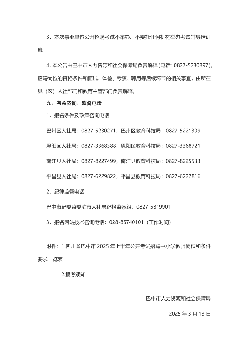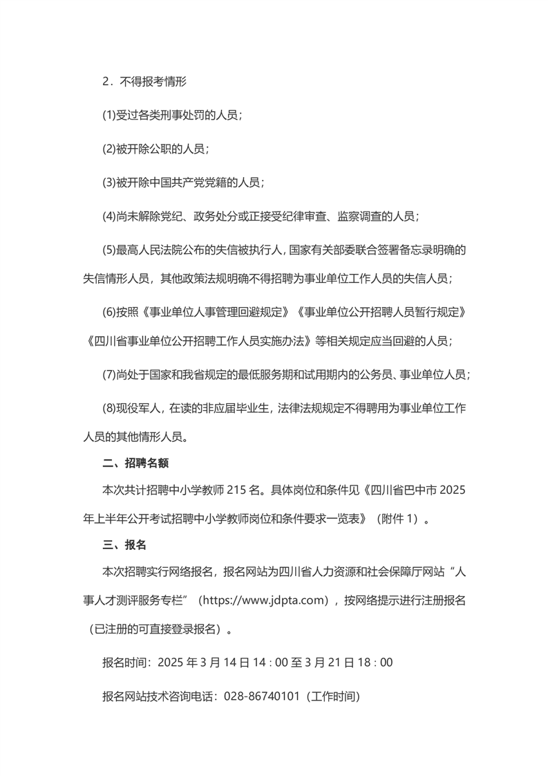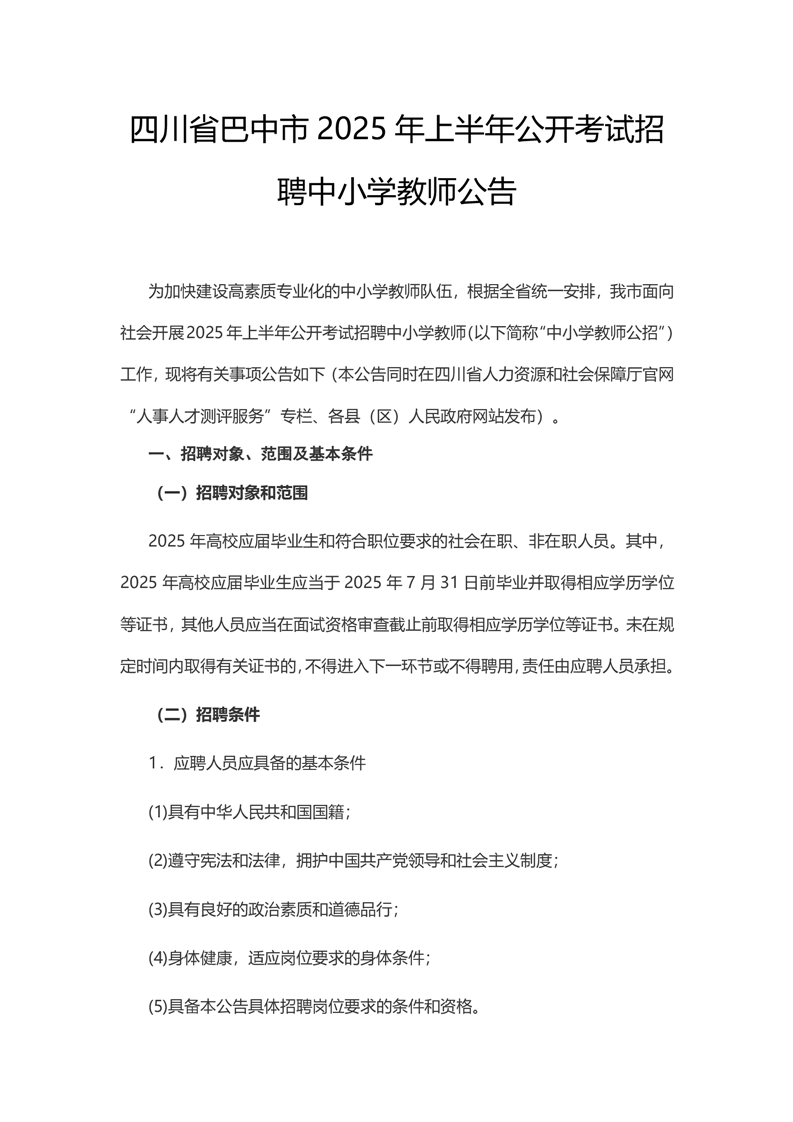 四川省巴中市 2025 年上半年公开考试招聘中小学教师公告