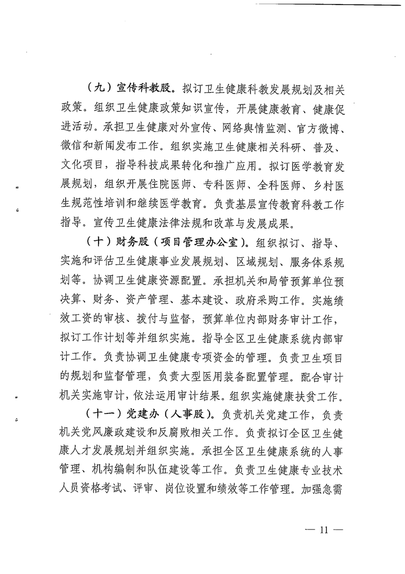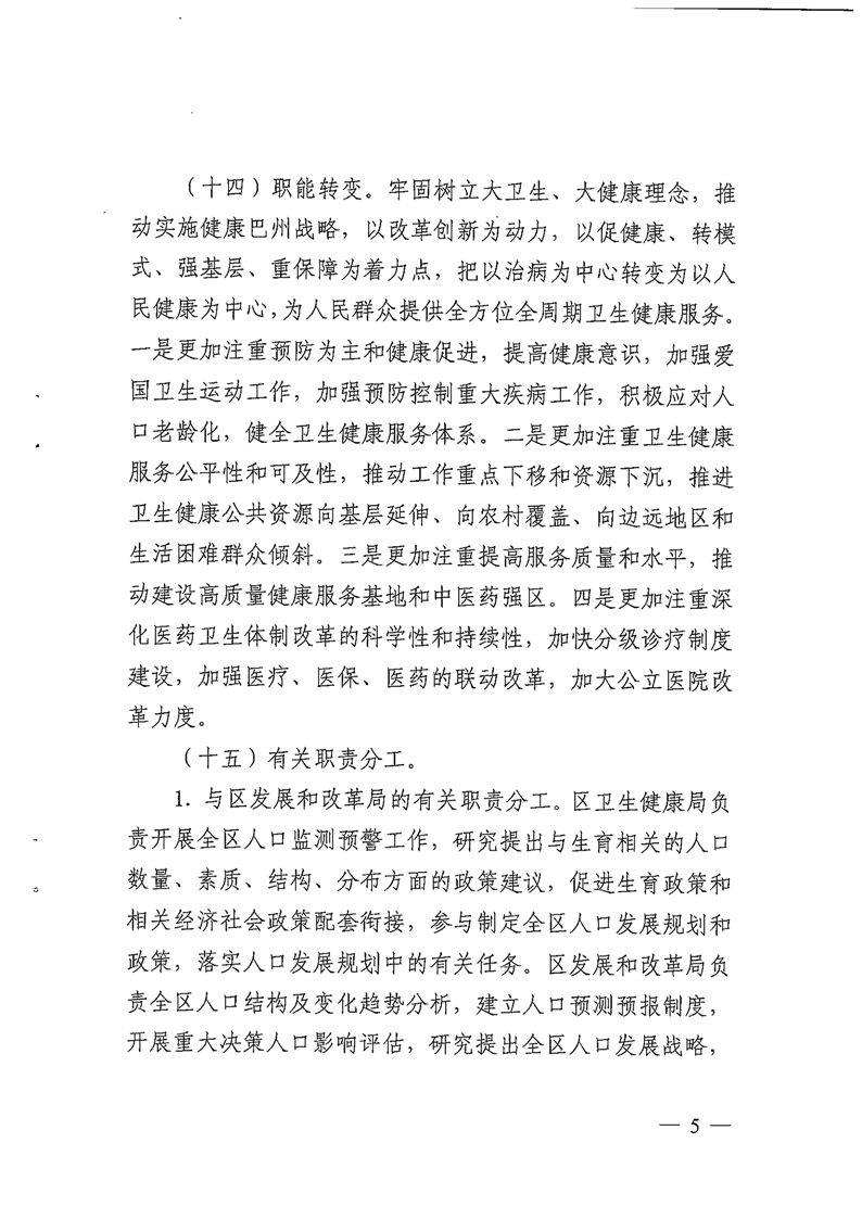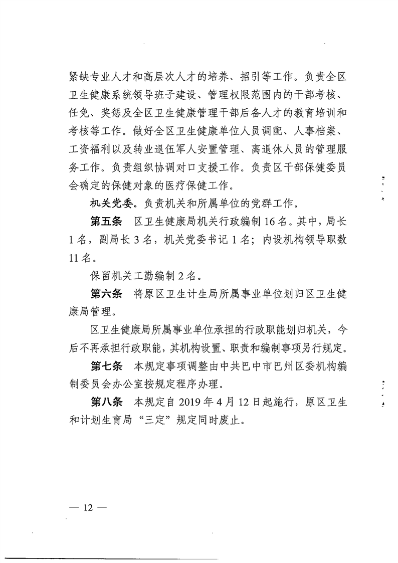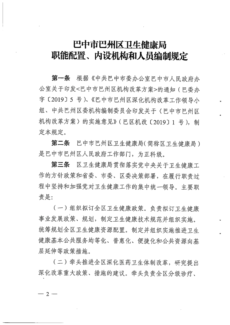 巴中市巴州区卫生健康局职能配置、内设机构和人员编制规定