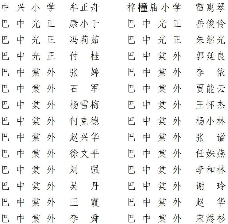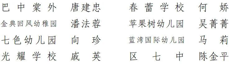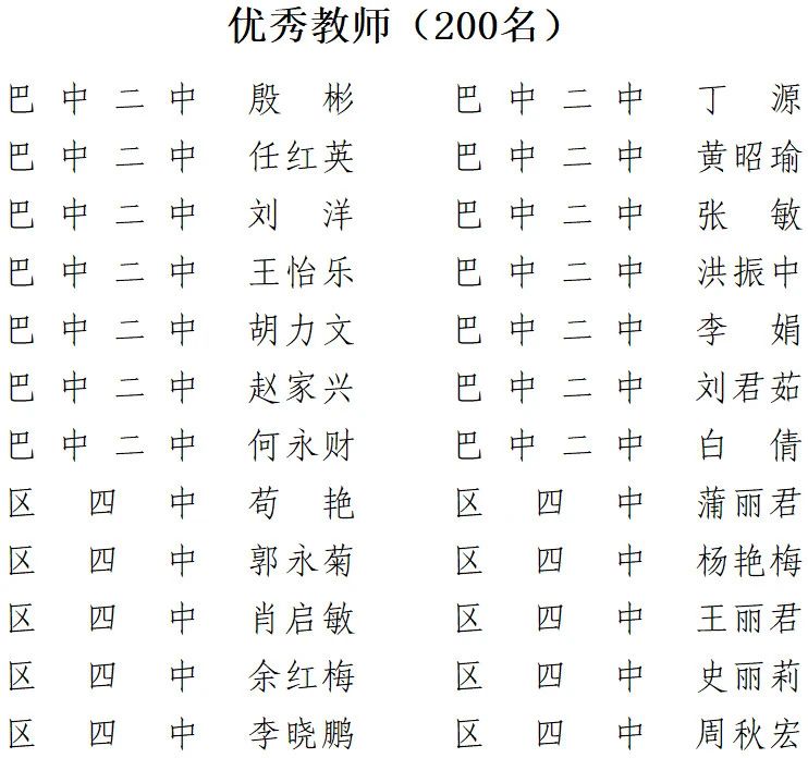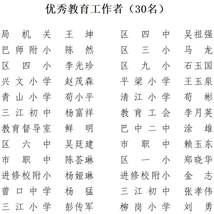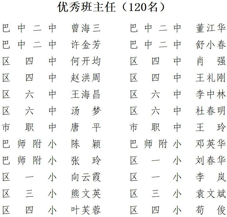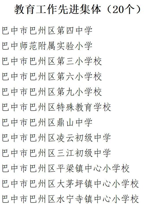 巴中市巴州区优秀教育工作者、优秀班主任、优秀教师和教育工作先进集体拟表扬对象公示