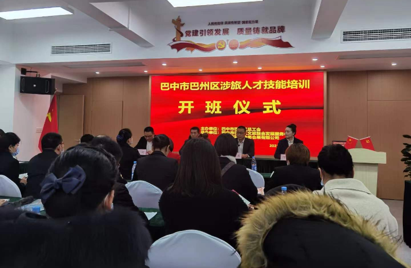 12月10日,由巴中市巴州区总工会主办,巴中市巴州区文旅融合发展服务中心、巴中市环宇会务会展有限公司承办的 “2021年度涉旅企业职工技能培训”正式开班,巴中市文化和旅游发展质量促进中心主任、巴州区总工会副主席、巴州区文旅融合发展服务中心副主任出席开班仪式并致辞。