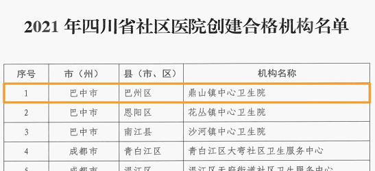 近日,四川省卫生健康委员会公布2021年“优质服务基层行”活动与社区医院创建结果,巴中市巴州区鼎山中心卫生院成为四川省社区医院创建合格机构。
