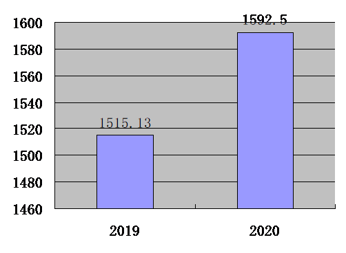 财政拨款总收入1592.5万元;其中2019年结转135.63万元,2020年本年收入1456.87万元。